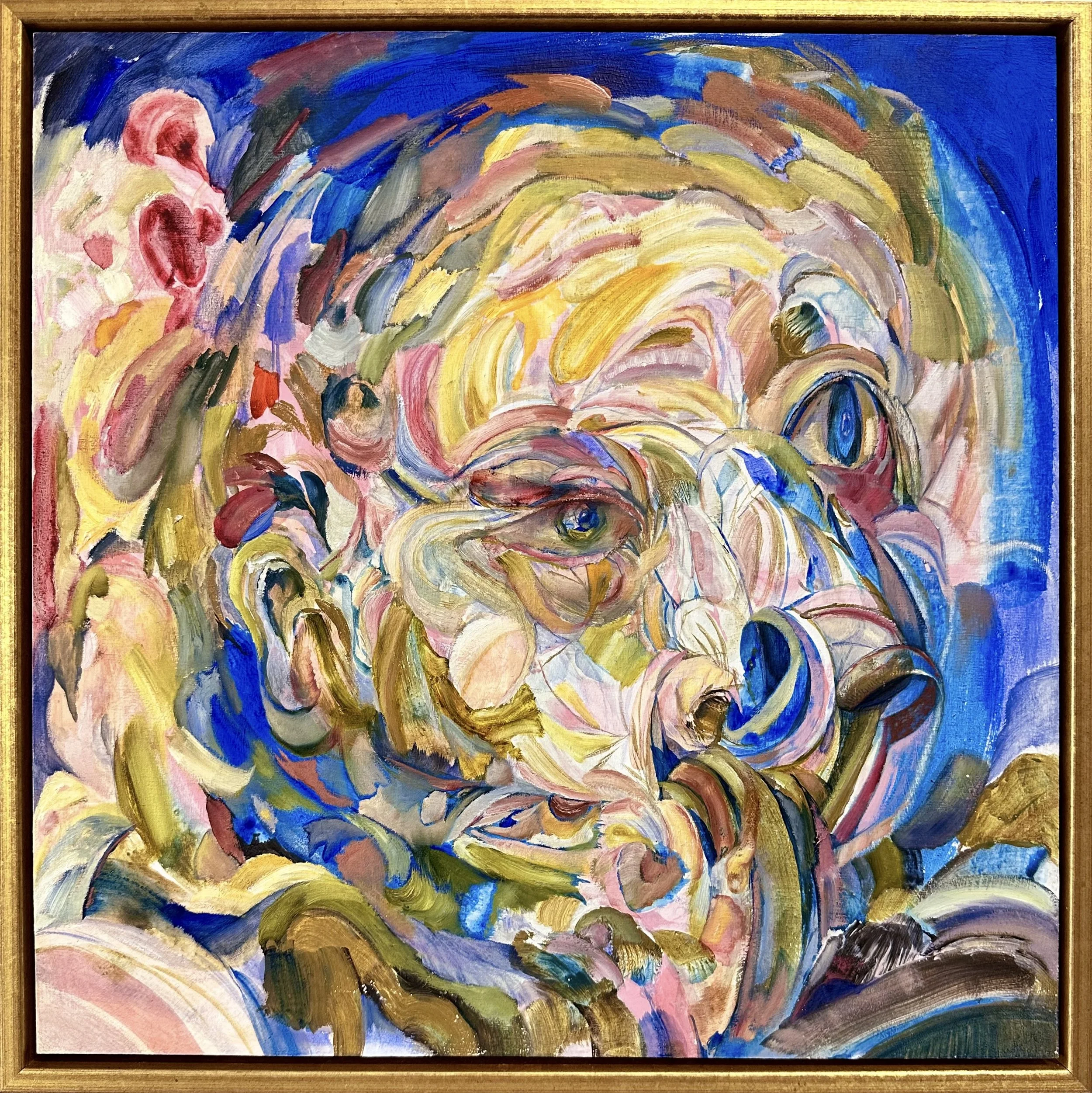 Linsey Levendall, “Inside Churns”, 2024, oil on wood panel, 17x17”, framed, $2,460
